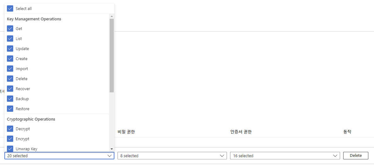 key vault로 가서 권한을 설정해준다.