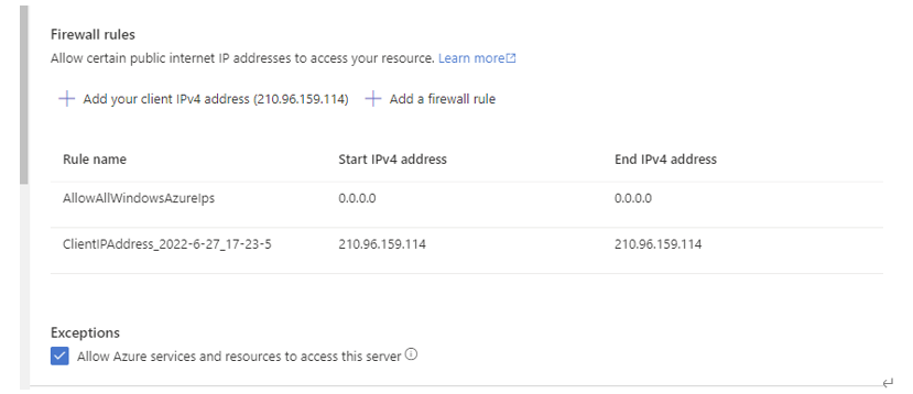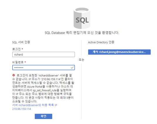 sql 리소스를 쓸 수 있도록 사용자의 공인 ip와 리소스 허용을 클릭해준다.