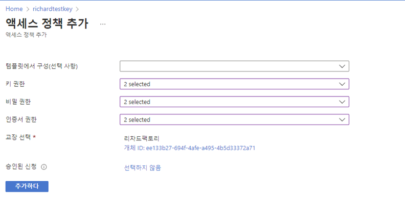 key vault에 대한 엑세스 정책을 추가해준다.