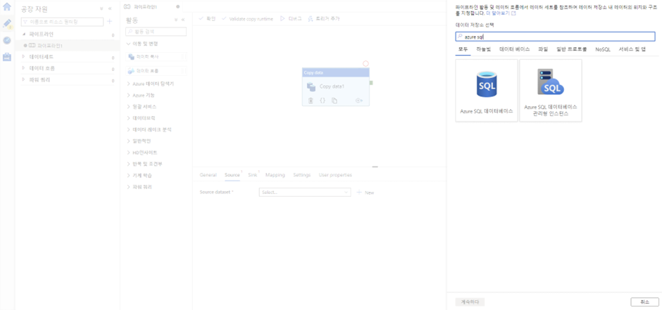data factory로 가서