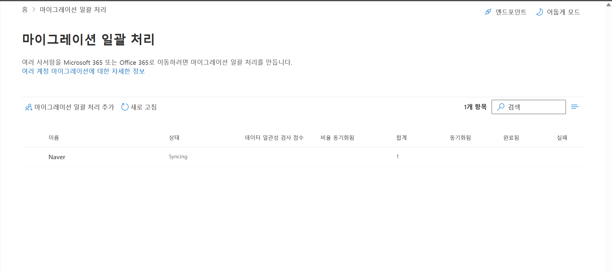 1. 사용자의 받은편지함 또는 기타 메일 폴더 항목만 마이그레이션이 가능합니다.