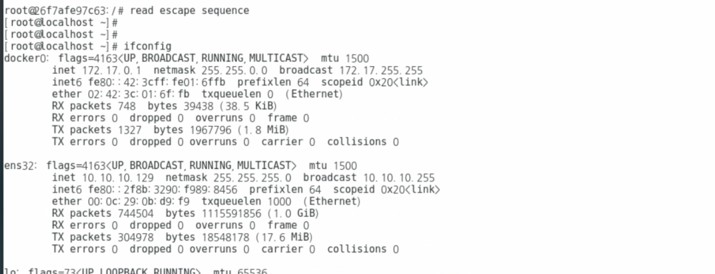 ctl+shift+p ,q 연타하면 아래 와 같은 결과가 나오면서 컨테이너에 빠져나올 수 있다.