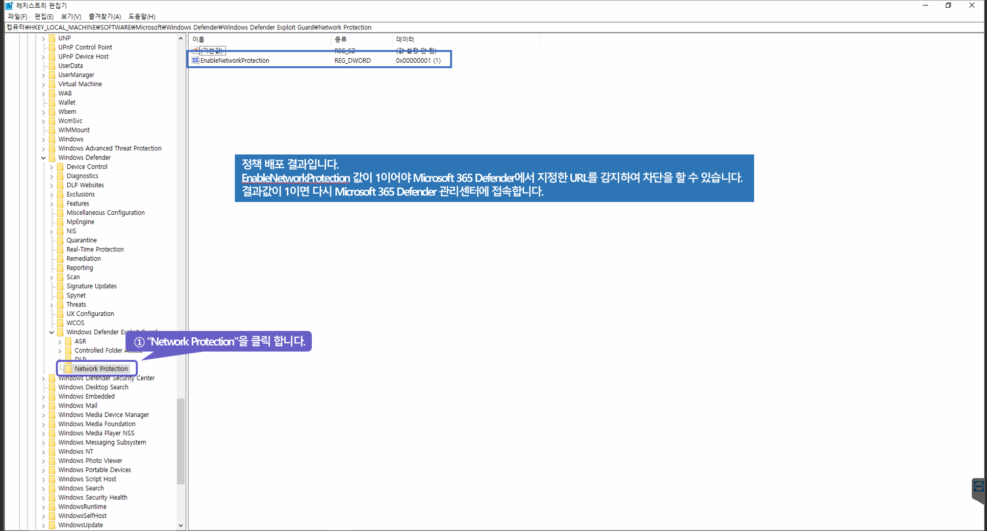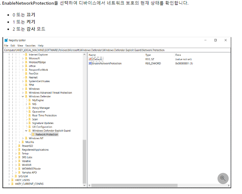 NetworkPretection이 1로 되어있는지 확인합니다.