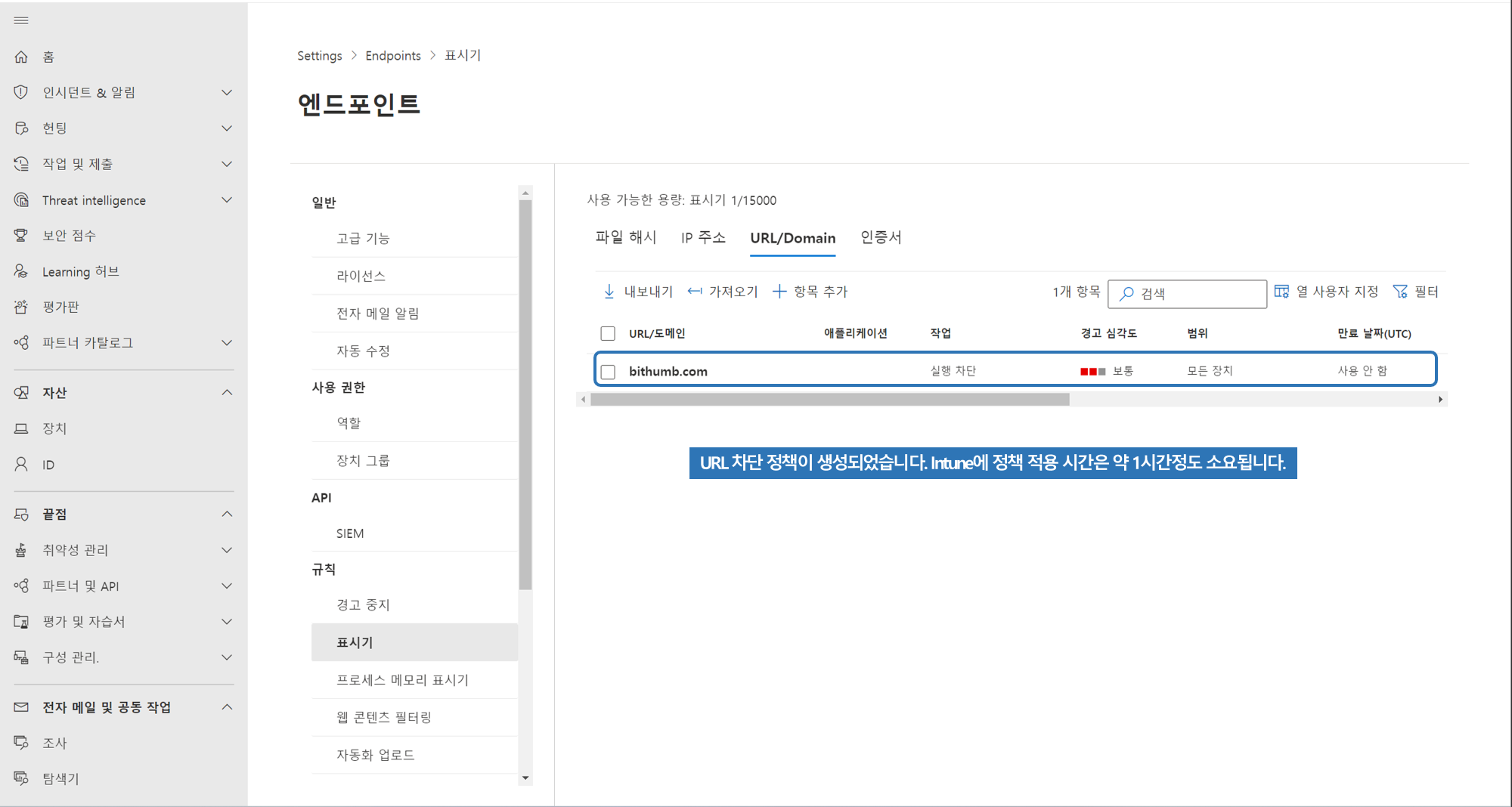 엔드포인트 Denfender로 도메인 차단 방법