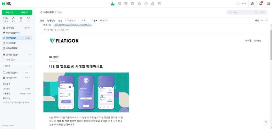 그러나 받는 사람 중 일부는 jaehyeon@naver.com라는 업체와 메일을 주고받습니다.