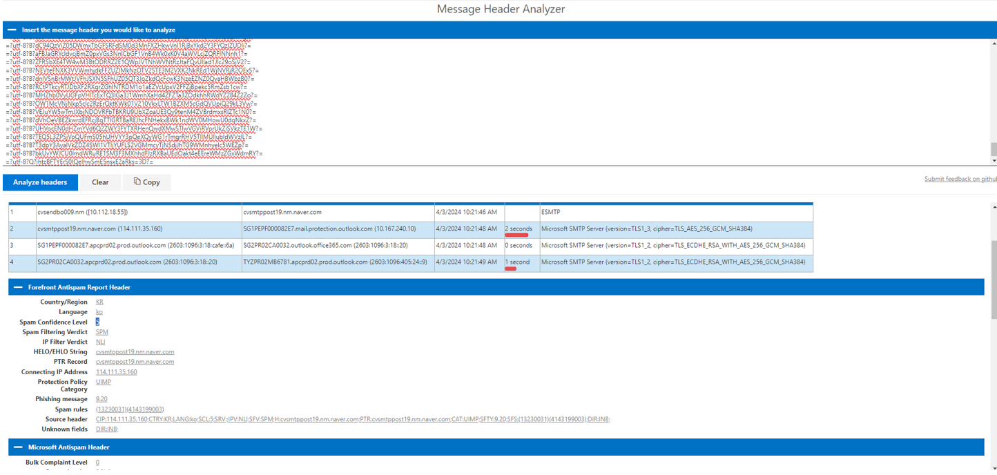 이 페이지에 들어가면 메시지의 헤더를 분석할 수 있습니다.