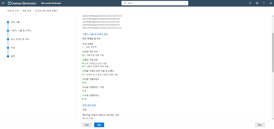 조치된 피싱 정책을 확인하고 제출하기를 클릭합니다.