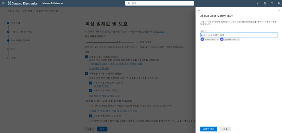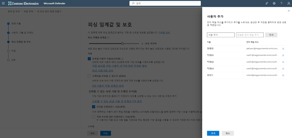 피싱 방지 정책에 보호받을 사용자, 그룹,도메인을 선택합니다.