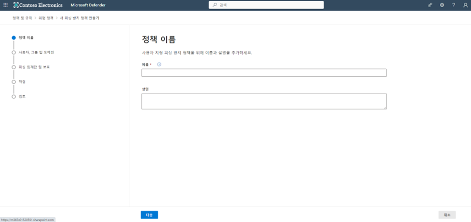 피싱 정책 이름과 설명을 적습니다.