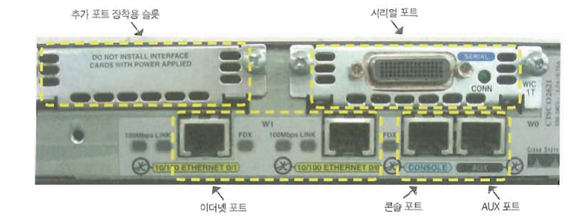 외부: 다른장비와 접속할 각종 포트 , pc와 접속하기 위한 콘솔포트와 AUX포트등이 있다