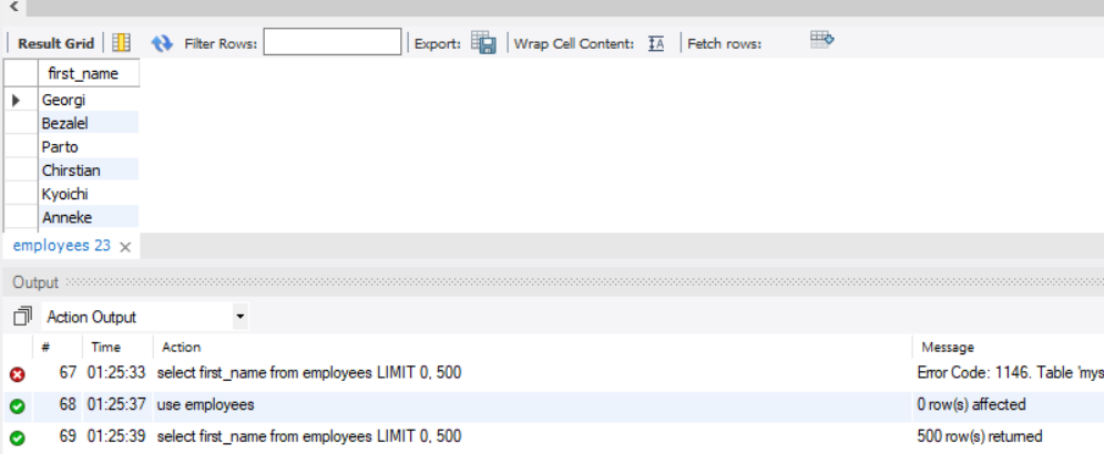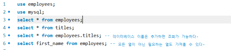 select first_name from employees; // 모든 열이 아닌 필요로 하는 열도 가져올 수 있다.