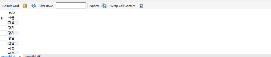 select distinct addr from usertbl; -- 중복된 결과를 제거해준다.