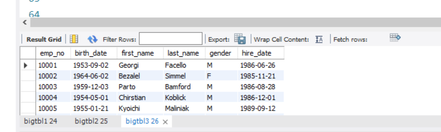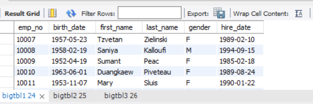 create table bigtbl2(select*from employees.employees);