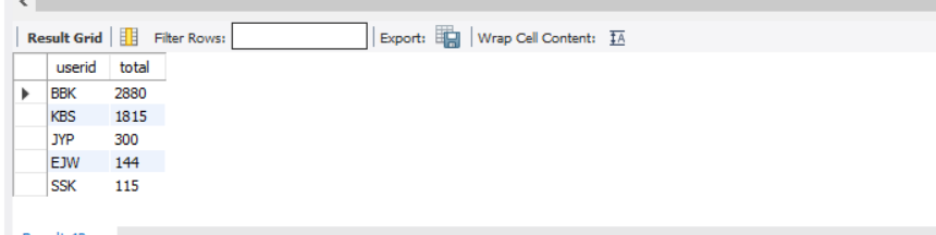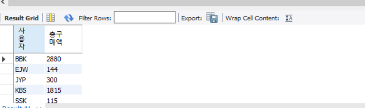 테이블 선택을 abc로하고 총구매액을 DESC로 하겠다.