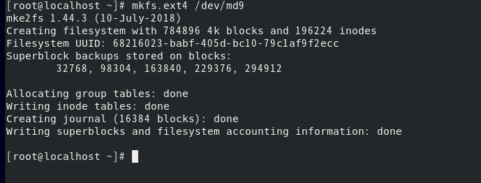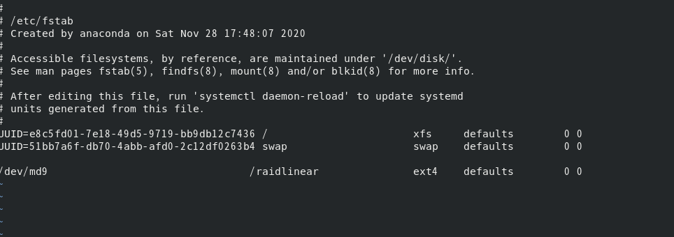 mount /dev/md9 /raidlinear -> md9장치를 raidlinear 리렉터리에 마운트하겠다.