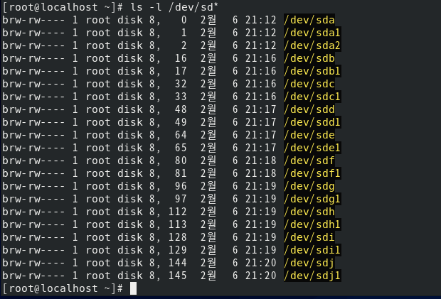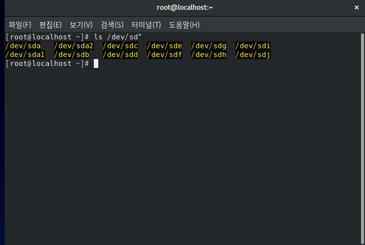 ls -l /dev/sd* 하고 장착된 디스크의 이름을 확인한다.