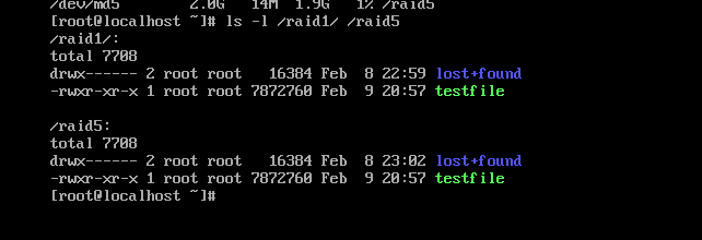 아까 vmlinuz-4*라는 파일을 각 레이드에 testfile 디렉터리 안에 복사한 데이터가 그대로 남아있다.