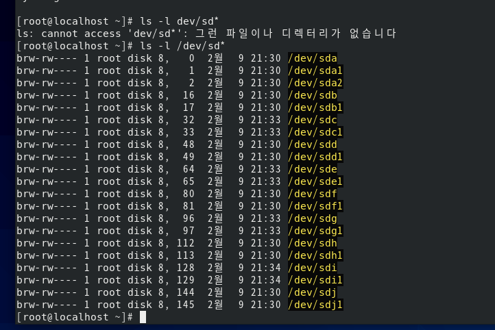 고장난 SCSI 0:2 SCSI 0:4 SCSI 0:6 SCSI 0:9 의 새하드 디스크를 추가한다.