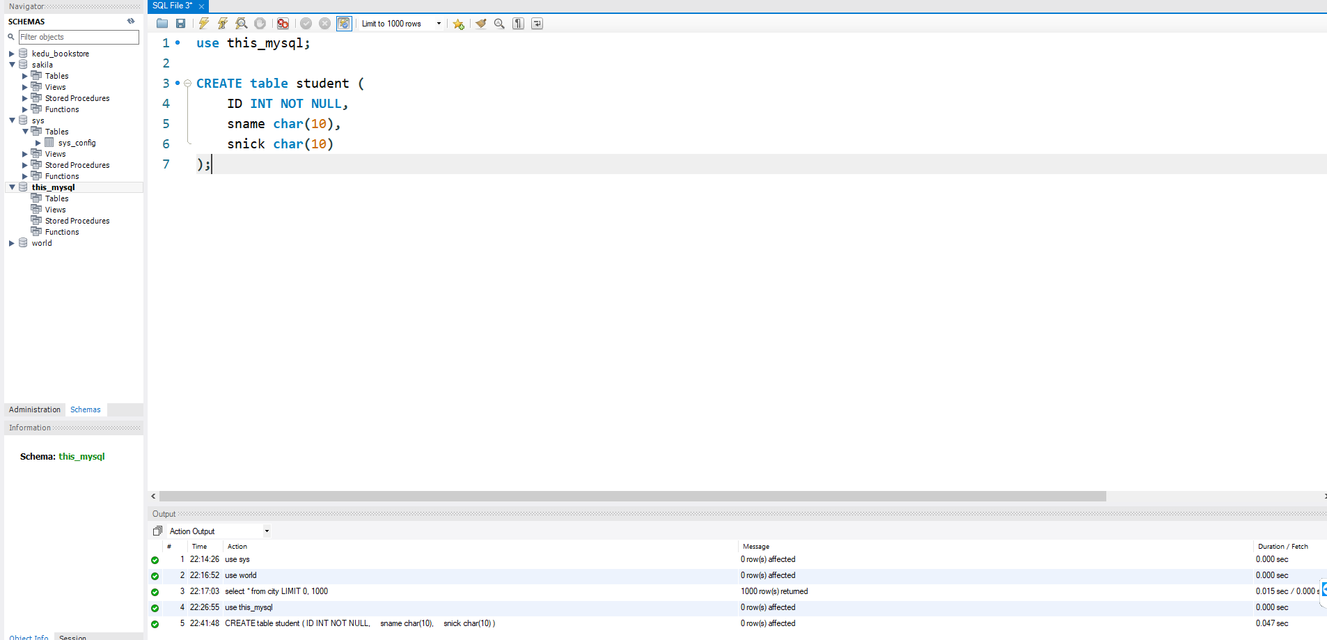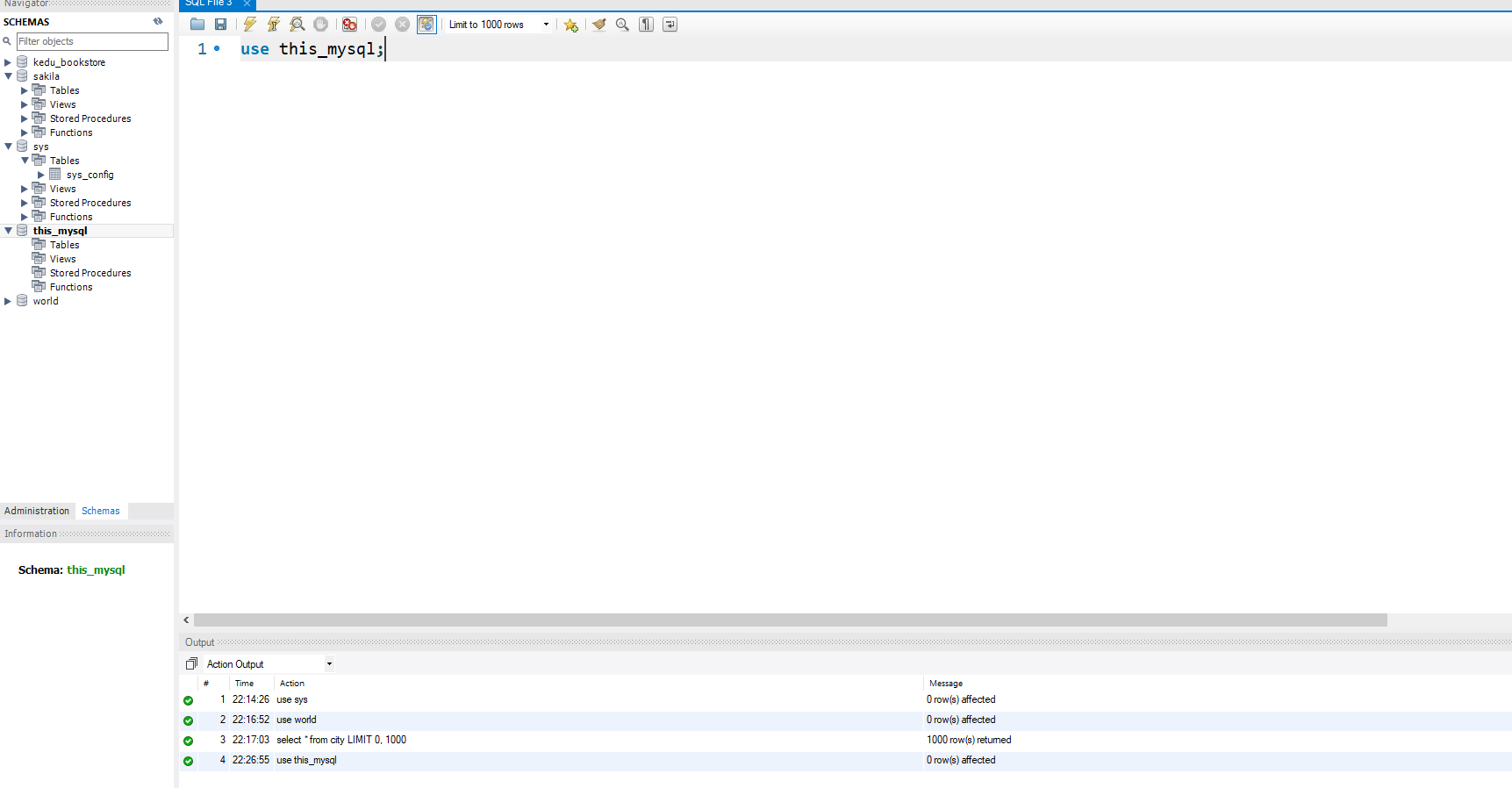 use this_mysql; // ctrl + enter 치면 실행이된다.