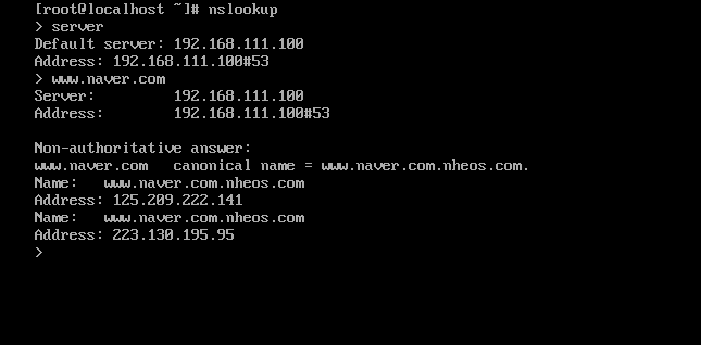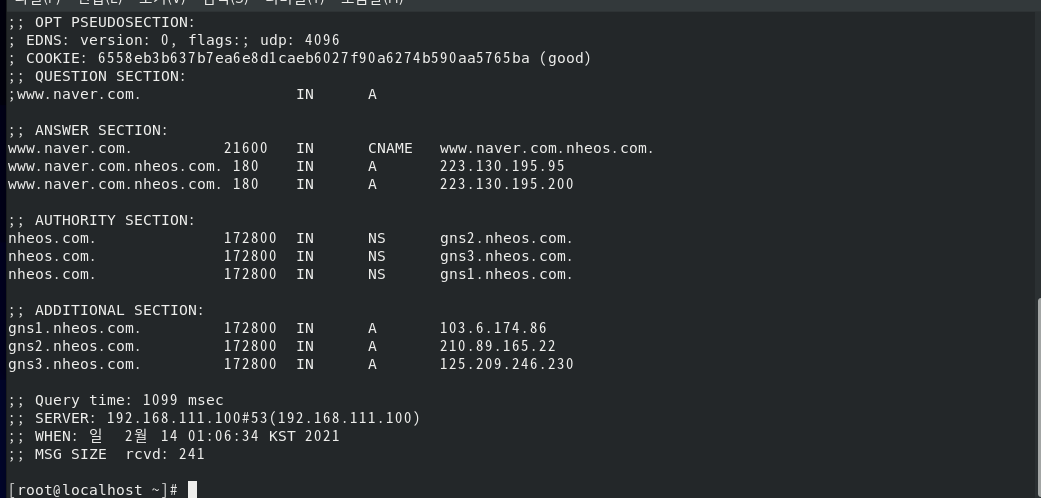 dig @192.168.111.100 하면 네임서버가 작동하는지 알 수 있다.