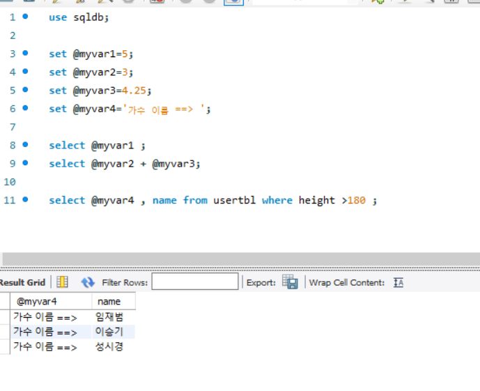 sql 도 프로그래밍 언어처럼 변수를 선언 할 수 있다.