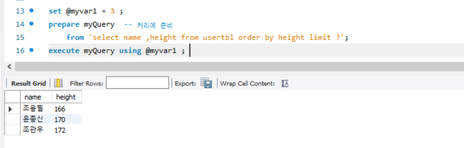 myquery 준비된커리에 using 한다고하면 3개의 값만 출력하게 된다.