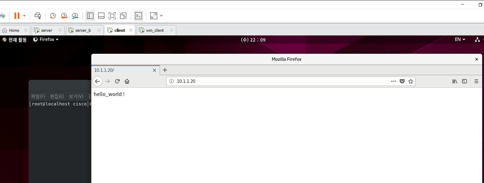 win_client 가 192.168.111.100에서 http를 요청하면 10.1.1.20 웹서버로 연결시켜준다.