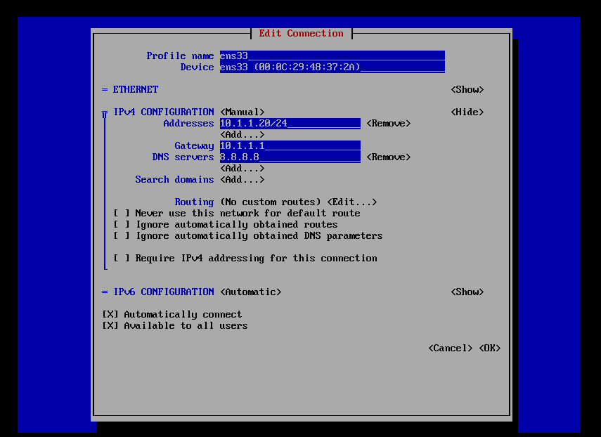 똑같이 리눅스 클라이언트도 ip=10.1.1.0 으로 설정하고 게이트웨이틑 10.1.1.1로 바꿔준다