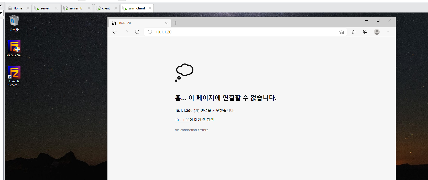 리눅스 클라이언트에서 사설 ip 대역에있는 win_client ftp 접속