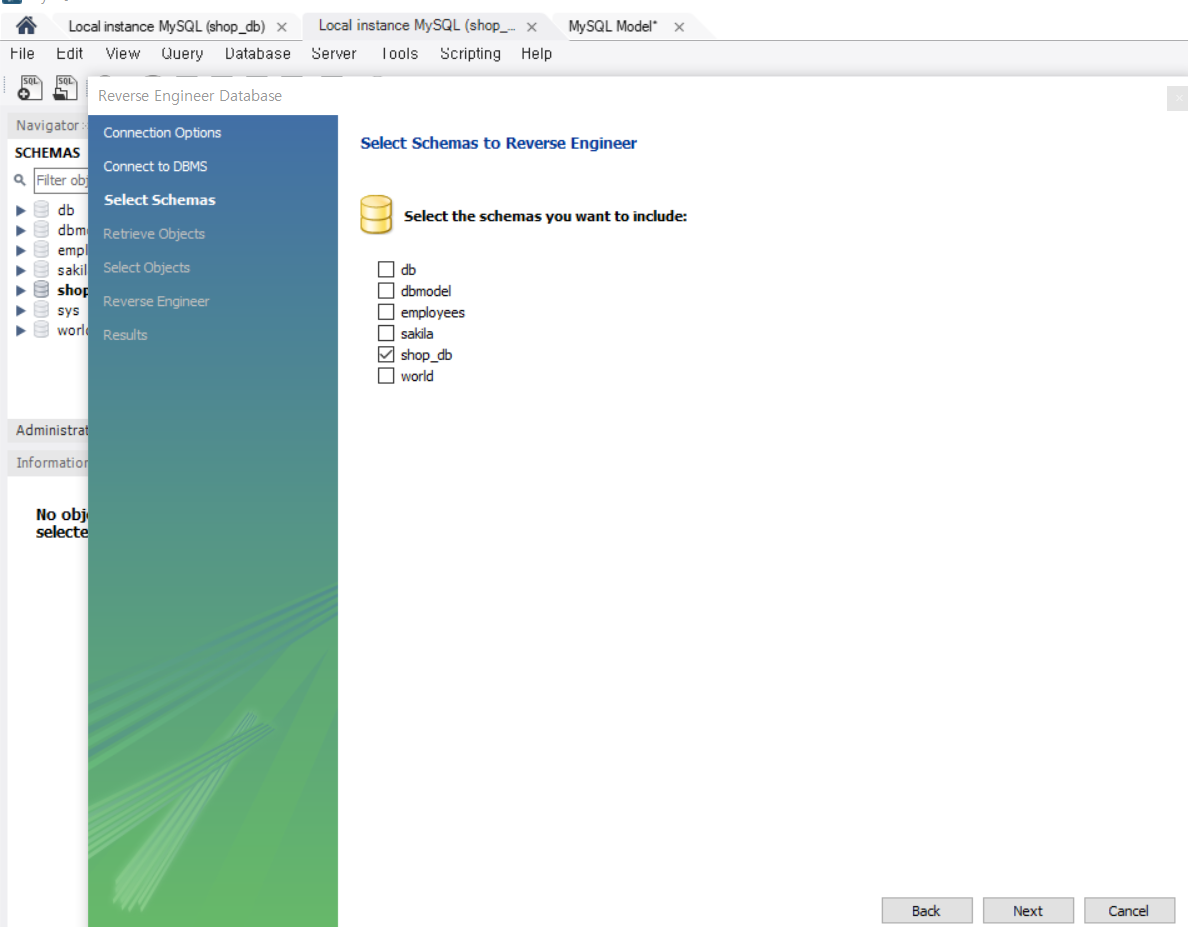 workbench 메뉴에서 database -> reverse engineer 선택