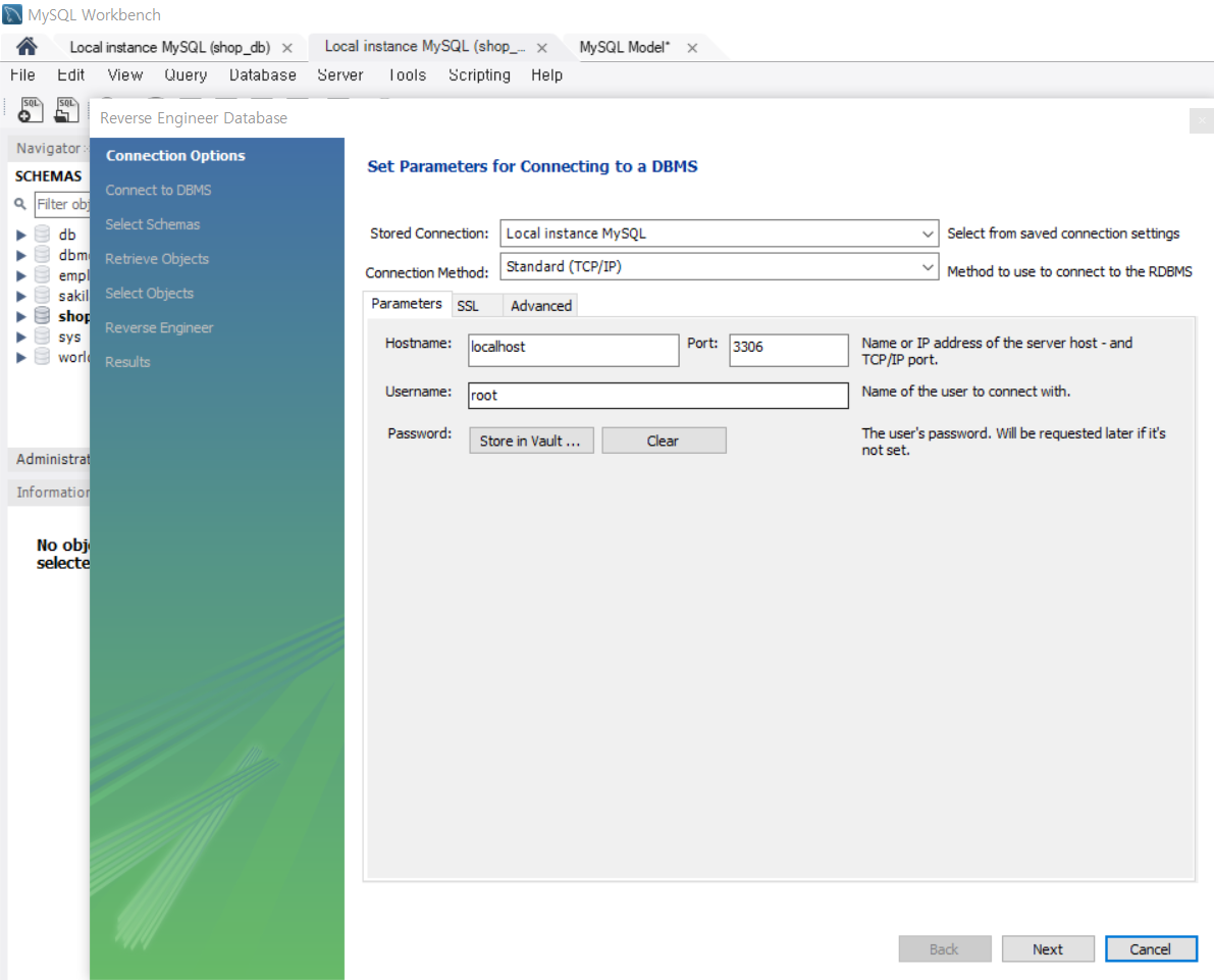 기존에 만들어진 database를 역으로 모델링도 가능하다.