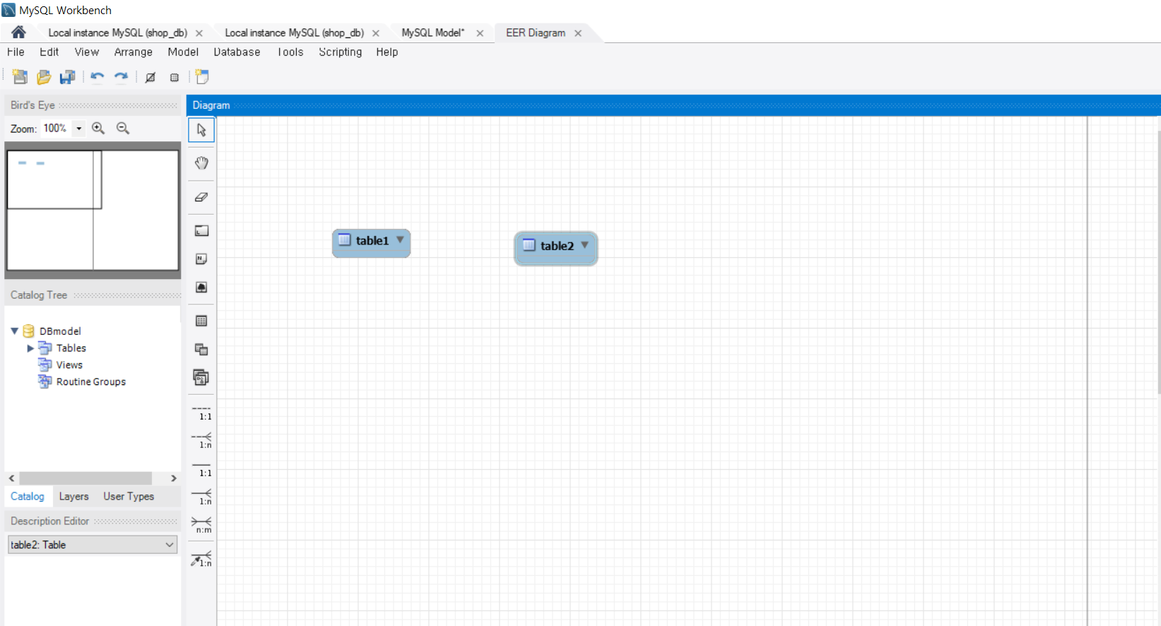 다이어그램이 생성되면 place a new table 아이콘 클릭후에 테이블을 갖다 놓자.