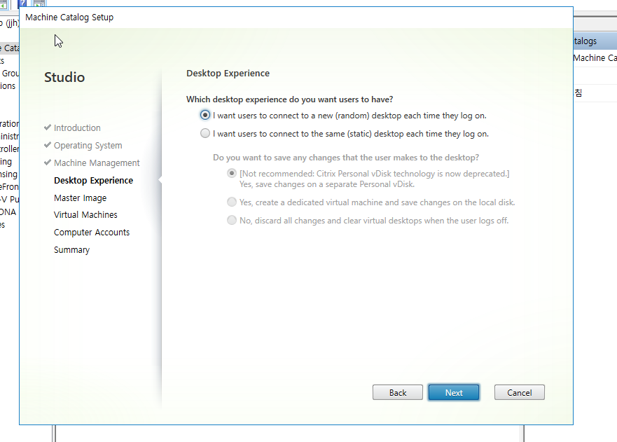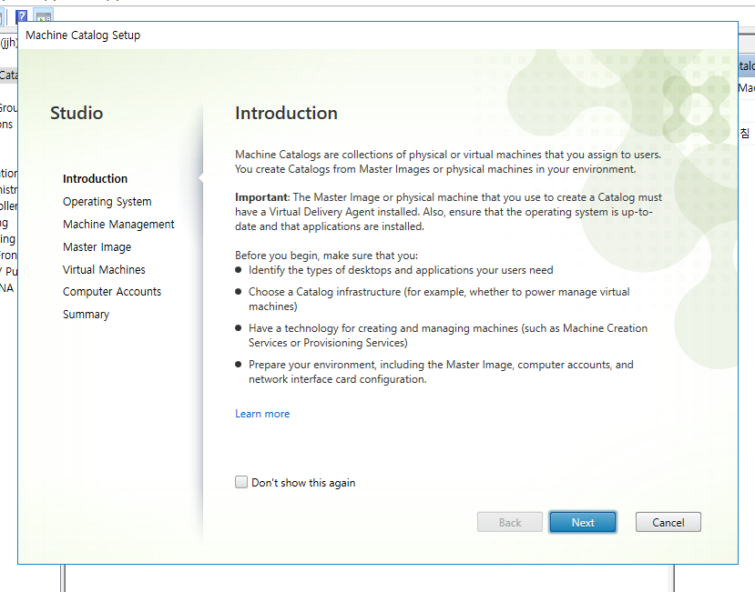 studio 에서 create machine catalog 클릭