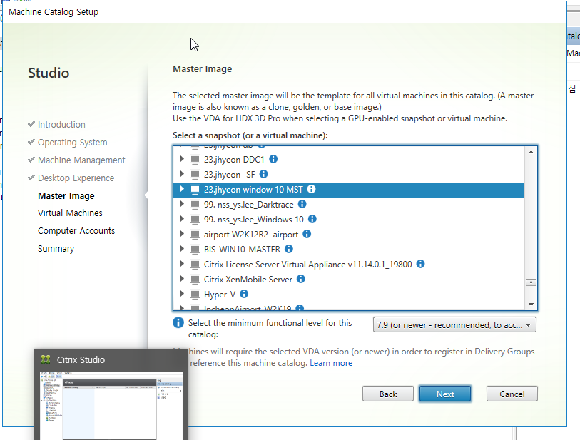 VDA를 설정한 마스터이미지 선택후 다음