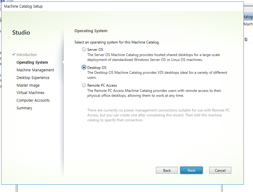 컴퓨터 카탈로그에 적합한 운영 체제를 선택합니다 . VDA를 설치 한 가상 머신의 운영 체제와 일치해야함