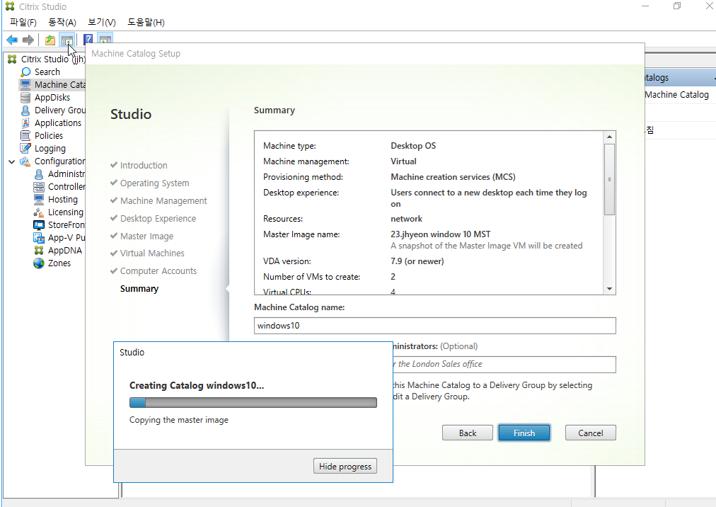 머신 카탈로그 이름을 지정해주고 finish 클릭