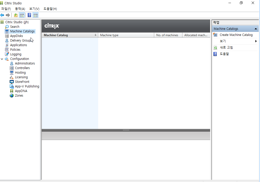 Citrix Studio의 왼쪽 메뉴 –> Machine Catalogs 클릭