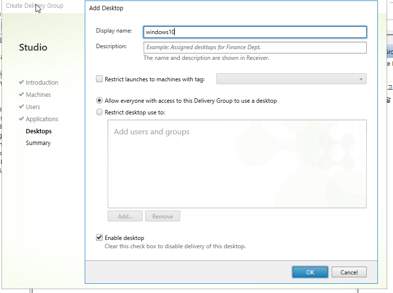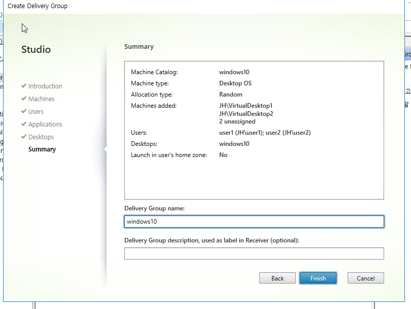 Delivery Group은 vm을 쓰기위한 사용자라고 정의하면된다.