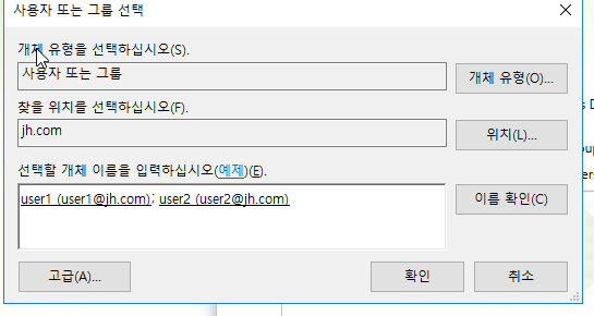 사용자를 AD 그룹 전체사용자로 할 수있고 제한된 사용자를 선택 할 수있음