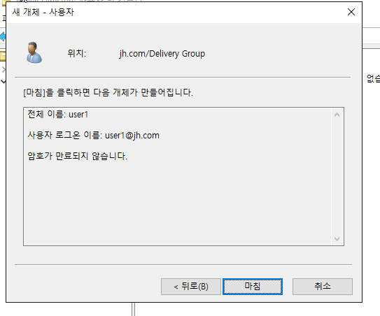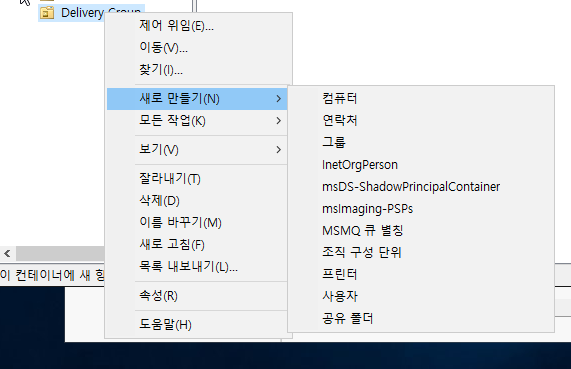 Delivery Group 이라는 개체 폴더가 만들어짐 오른쪽 마우스 클릭 후 사용자 클릭