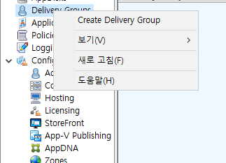 Studio 왼쪽 카테고리에 Delivery Groups 오른쪽 마우스 클릭
