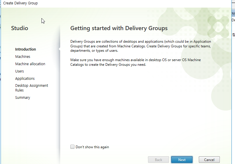 Delivery Controler 에서 배포된 VM을 쓰기위해서 Delivery Group을 만들어줘야하는데