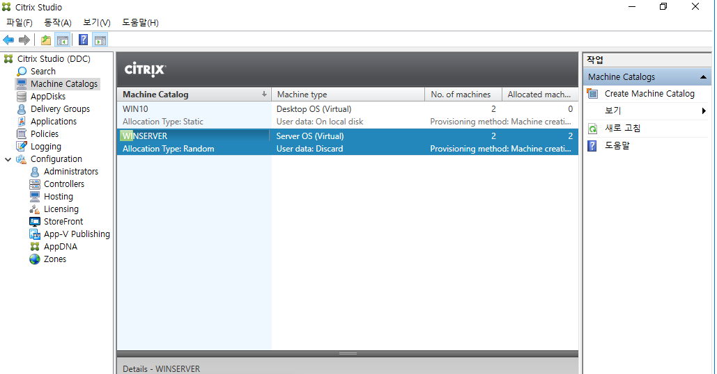 머신카탈로그 로 가서 오른쪽 마우스 클릭 후 update machines 클릭