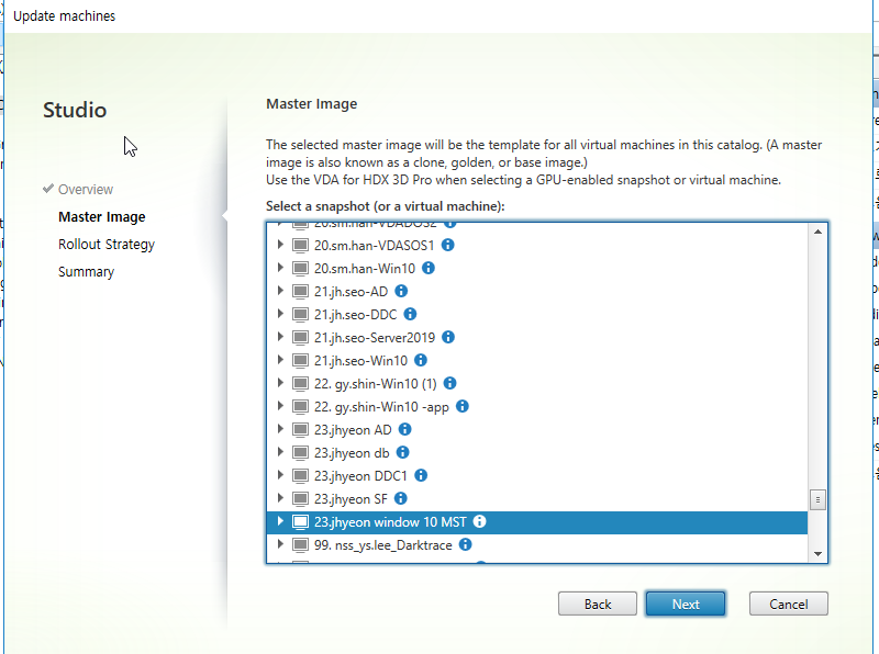 사용자에게 배포되는 가상컴퓨터는 VDA가 설치된 마스터 이미지로부터 받아온다.