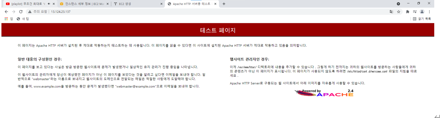 그후 퍼블릭 ip 로 접속한 결과