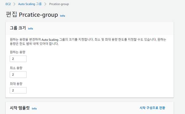 Auto Scaling 그룹 선택 -> 편집