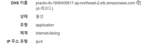 로드밸런서도 하나의 서버이고 클라이언트의 요청을 직접 받기 때문에 테스트해볼 수 있는 DNS 주소가 자동으로 발급되어있다. DNS주소를 복사 후 브라우저에 접속 시도 해보자