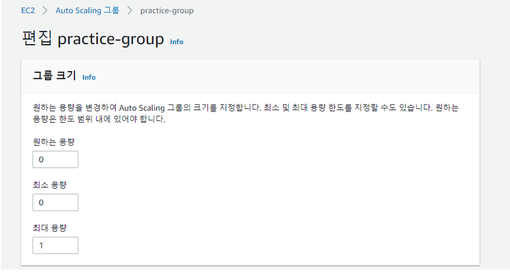 Auto scaling 그룹 -> 편집 -> practice-target-group 대상 그룹에 등록한 뒤 저장