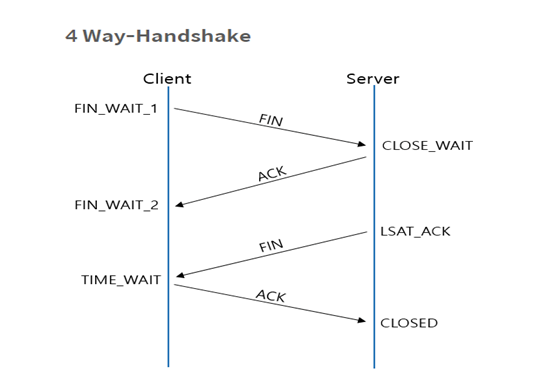 7. TCP의 4way-handshaking 연결 종료 방식으로 웹서버와 연결을 종료한다.