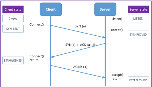 3. TCP의 3way-handshaking 연결 방식으로 웹 서버에 연결하고 http는 80 https는 443포트이용한다.